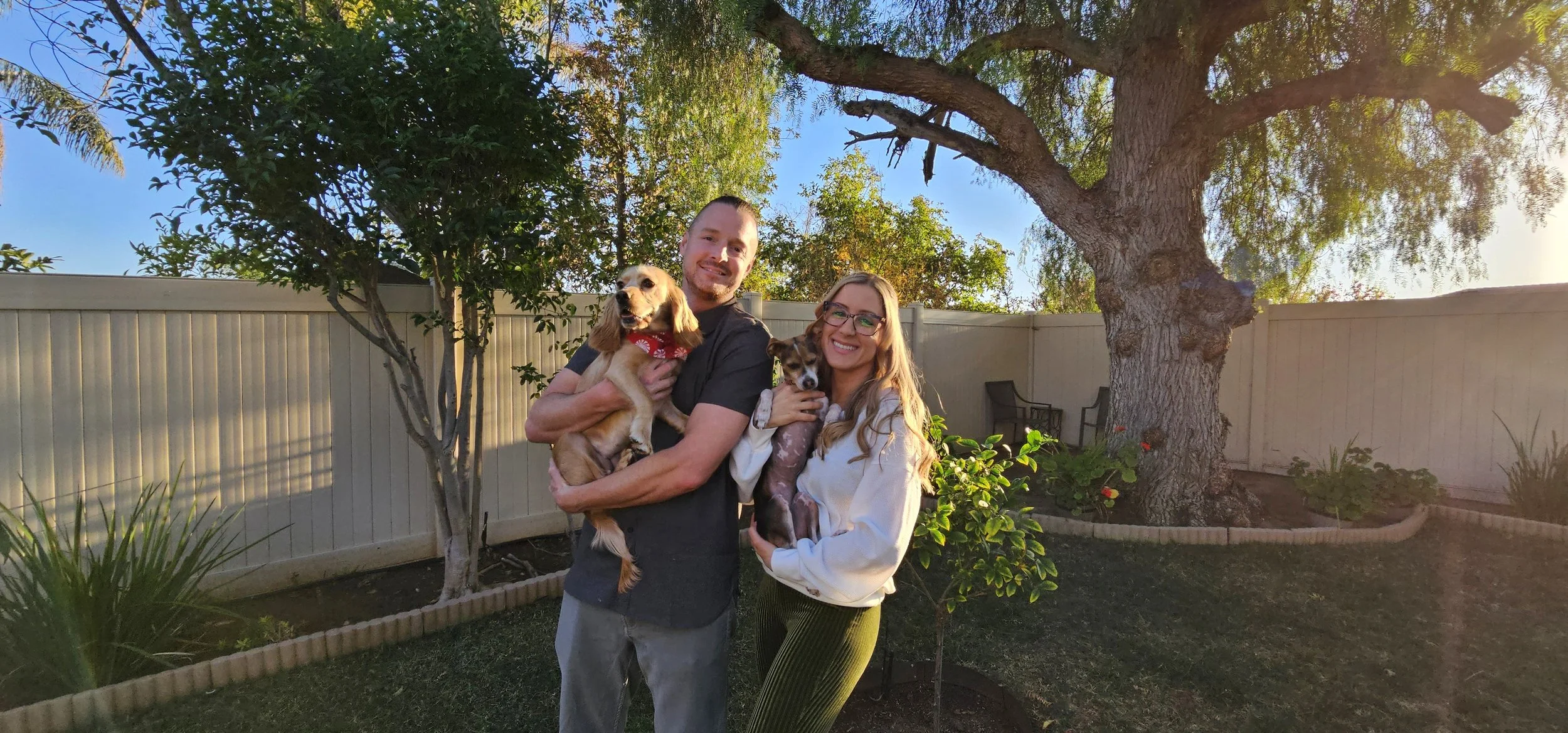 Day to day, we both work from home with flexible schedules, which allows us to be deeply involved in the lives of those we love. We find so much peace in nature and the beauty of the outdoors.. whether we’re exploring a mountain trail, tending to our backyard garden, hosting family dinners on the patio, or just playing in the grass with our dog, Nova.